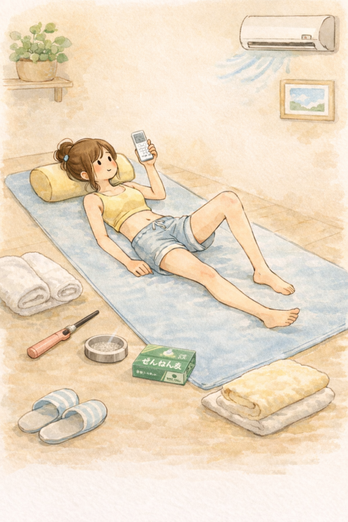 ①室温:お灸の最中は肌の露出があるため、冷えないようエアコンなどで室温を高めに設定しましょう